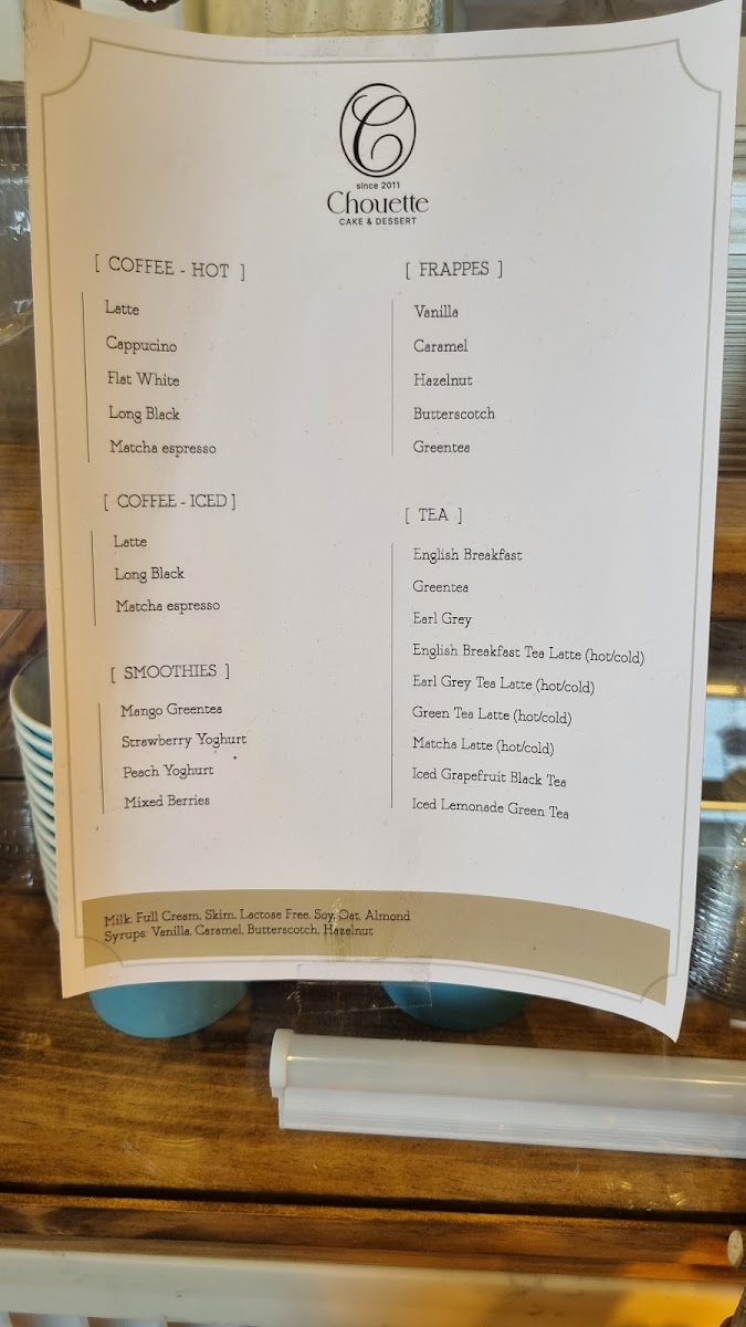 Chouette Cake & Dessert Menu